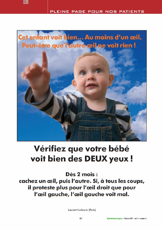 (La reproduction de cet extrait de la revue Ophtalmologies, sans modification, et avec mention de la source est libre pour les médias grand public.)